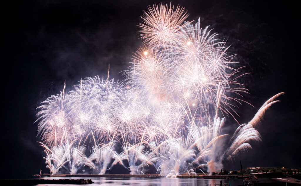 デジタル点火技術を駆使する事で、0.01 秒単位でコントロールされて打上げられるデジタルスターマイン。
