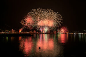 今年はコロナ対策、お客様同士の距離をとりながら開催いたしますので皆様のご協力お願いいたします。網代温泉の夏の一大イベントでもあります、この花火大会は、海と山との間に挟まれた地形なので、音響効果抜群。特に炸裂した時に魚の形をした花火が人気、国道135号線を歩行者天国にしていますので道路にあおむけになって花火を楽しむこともできます。
