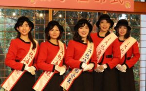 毎年12月第2週の土曜、日曜に大縄公園で開催されるひもの祭りは、年間4回(8日)開くひもの祭りの”元祖”でもっとも人気が高い日程です。今年も試食会を開き、赤い法被姿の役員らが、炭火で焼いた脂の乗ったアジの干物を来場者にふるまいました。