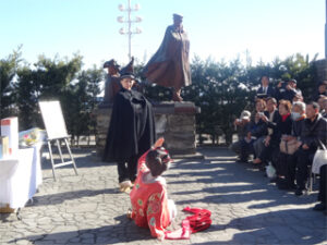 交歓会では、中島熱海市観光協会長、齊藤熱海市長、橘田副町長、白井大島町観光協会長の挨拶に続き、熱海の梅と大島の椿の交換、ミスの紹介へとうつりました。