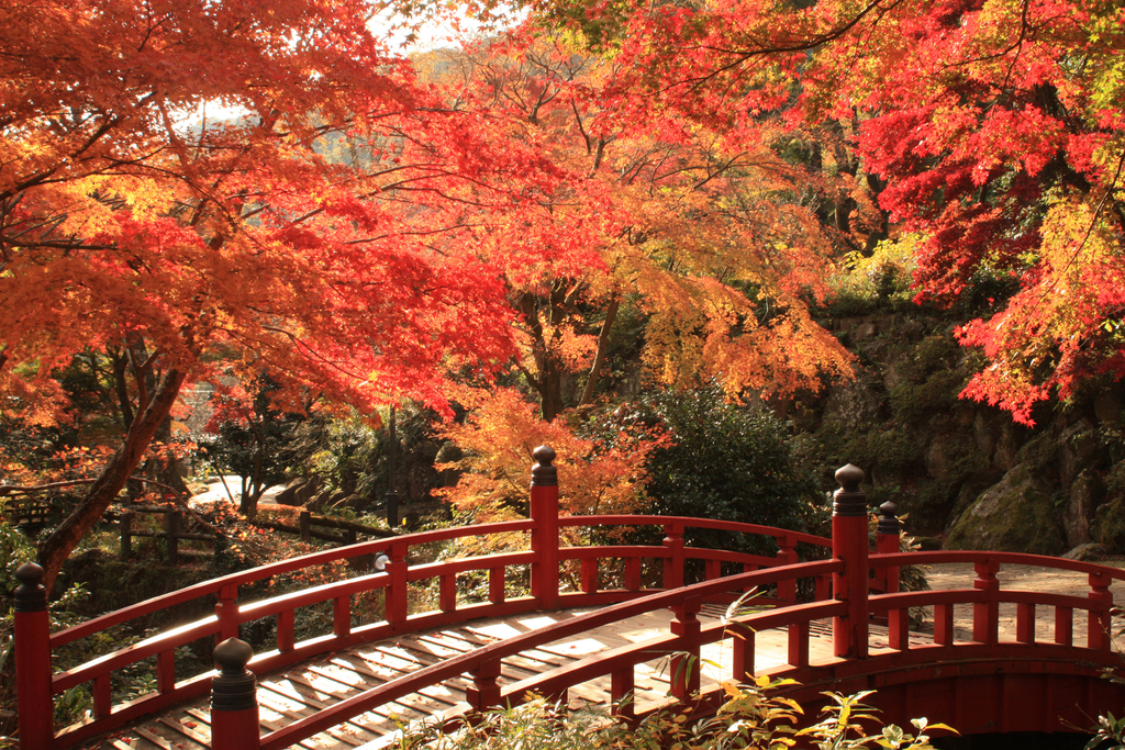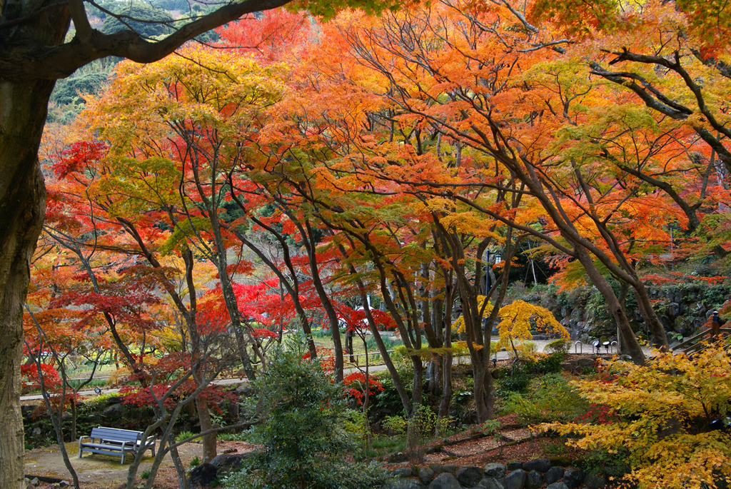 園内にはカエデ類が380本あり、温暖な気候のせいか、毎年11月下旬から12月にかけて色づくため 「日本で最も遅い紅葉」とも言われます。