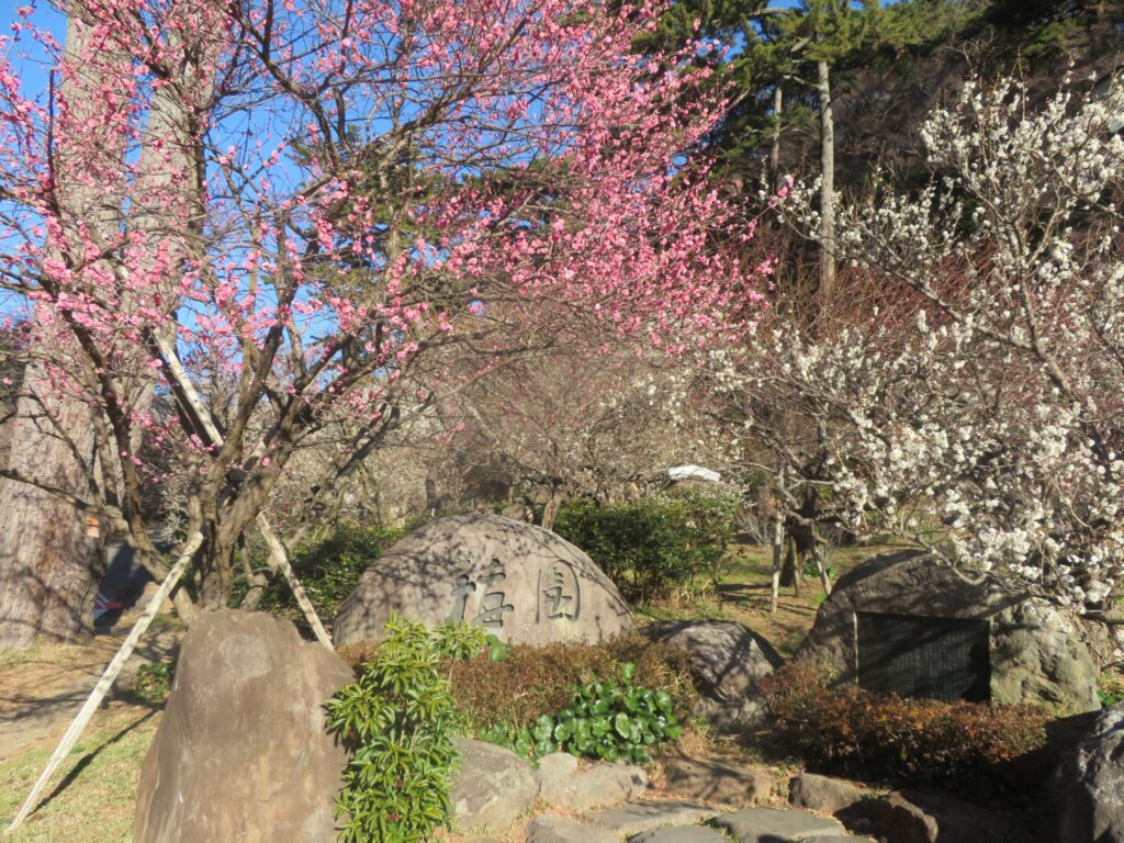 開花している木:冬至梅、緋の司、十郎、鹿児島紅、一重野梅、玉牡丹、鴛鴦、紅冬至、未開紅、唐梅、鶯宿、長束、満月枝垂、大盃、酔心梅、鬼桂花、道知辺、三吉野、白加賀、紅千鳥、花香美、見驚、玉垣枝垂、白滝枝垂など