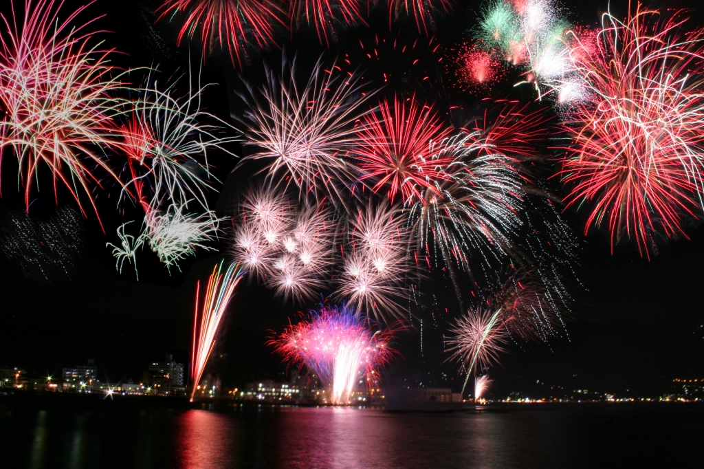 毎年開催する網代温泉海上花火大会。今年も平鶴目の前、国道135号沿いの網代湾から多賀湾にかけて、3000発の花火や、百八体焼きの旧盆送り火の行事が行われます。今年も8/16に開催が決定しました。コロナ対策の為に、お客様にはマスクの着用と距離を取ることをお願いいたします。地元の皆さまは自宅付近よりお楽しみいただき、密を避けるご協力をお願いしております。網代湾の花火と、多賀湾での灯篭流しの灯りや送り火があいまって、壮観な情景が楽しめます。海上から斜めに打上げる「海上横打ちスターマイン」や空中ナイアガラ、魚をかたどった花火などもあり、見どころ満載です。