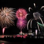 今回は熱海市観光協会が主催し、通常のプログラムを一部変更。開始前に熱海市長が被災犠牲者に哀悼の言葉を述べ、全員で1分間の黙とう。恒例のカウントダウンに変え、追悼の想いを込めて超特大の「2尺玉」(直径約60センチ)を打ち上げました。開花直系は約500メートル。大輪の花の端は海面に及び、8000人(主催者発表)の観客を魅了しました。2尺玉は例年、8月の最終週に熱海市ホテル旅館協同組合が年に1度だけ打ち上げてきました。