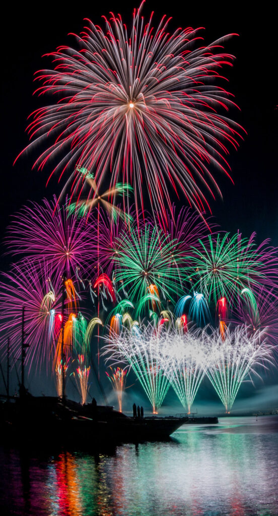 デジタル点火技術を駆使する花火で、0.01 秒単位でコントロールされて打上げられるデジタルスターマイン。